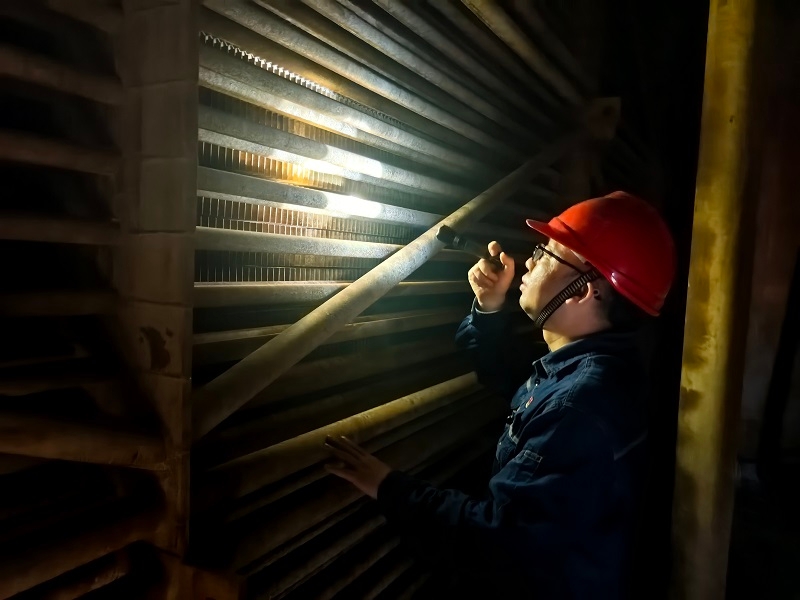 他是设备整治的“专业智囊”。他扎根现场,解决了多项影响机组运行的重要问题。在2022年公司5号锅炉脱硝入口垂直烟道下沉处理中,他通宵奋战开展应急处置,60天艰苦奋斗,近10次评审,终于制定出圆满的解决方案。在2023年锅炉低氮燃烧改造项目中,他作为技术专责与团队熬夜敲定技术文件细节,随施工团队驻厂倒班,严格把关每个质量点,最终啃下这根“硬骨头”。