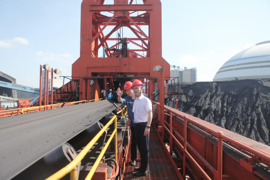 察看鄂州电厂输煤系统运行情况(摄影:王鑫)