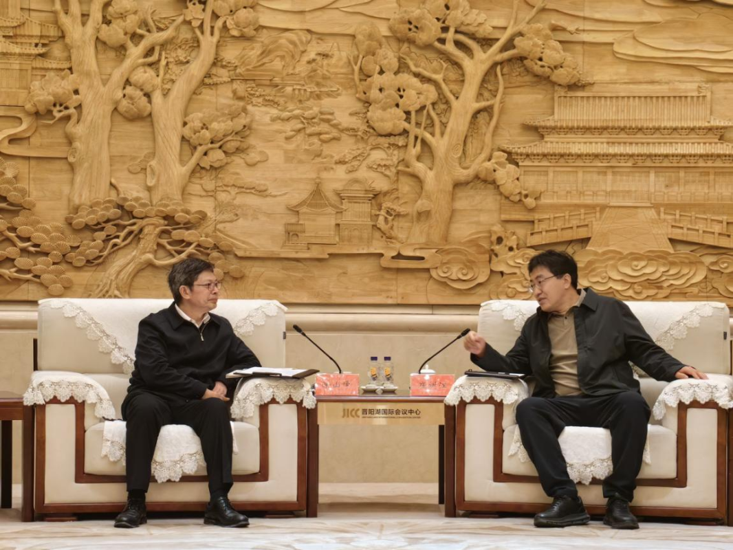 涂山峰与晋能控股总经理、党委副书记崔树江座谈(摄影:李雅璇)